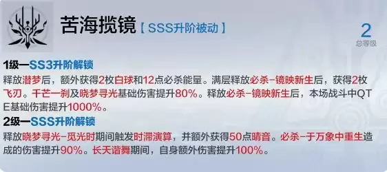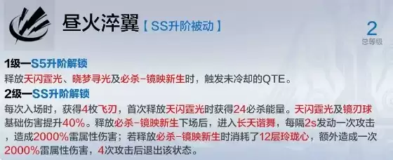 伤害方面提升核心伤害,同时解锁10倍QTE伤害被动。综合来看是提升最夸张的2S3等级。