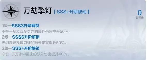 SSS:核心的长按普攻带时停,能为流程节省1秒左右的时间,获得额外的50点暗音,能让囚笼首次下场就可以打出超级QTE。结合提升100%额外伤害的后台被动。斩杀能力进一步提升。不过重点还是大招最终倍率提升1.9倍。让指挥官感受数值的魅力。