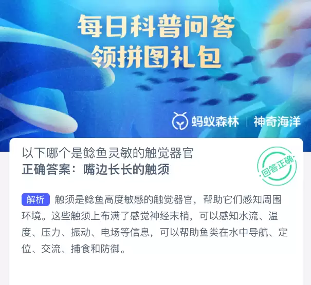 支付宝神奇海洋今日答案:鳐鱼灵敏触觉器官揭秘