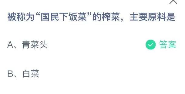 支付宝蚂蚁庄园:榨菜主要原料,11月19日答案最新公布
