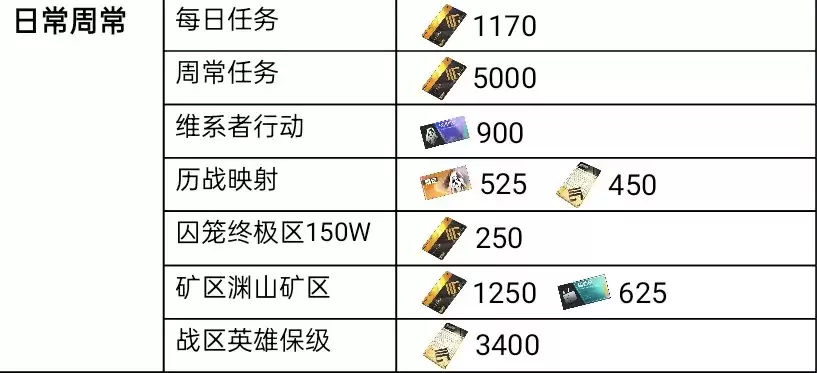 3、矿区和历战映射收益,按两周收益=2×版本周数计算