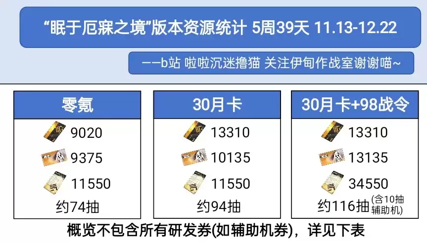 4、矿区和历战按拿满计算,练度较低玩家每个版本约减少600-1000抽卡资源