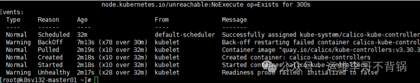 在群友提供的截图中还有一个pod没有完全起来,那就是CoreDNS处于Running但未就绪(Ready=False)状态。