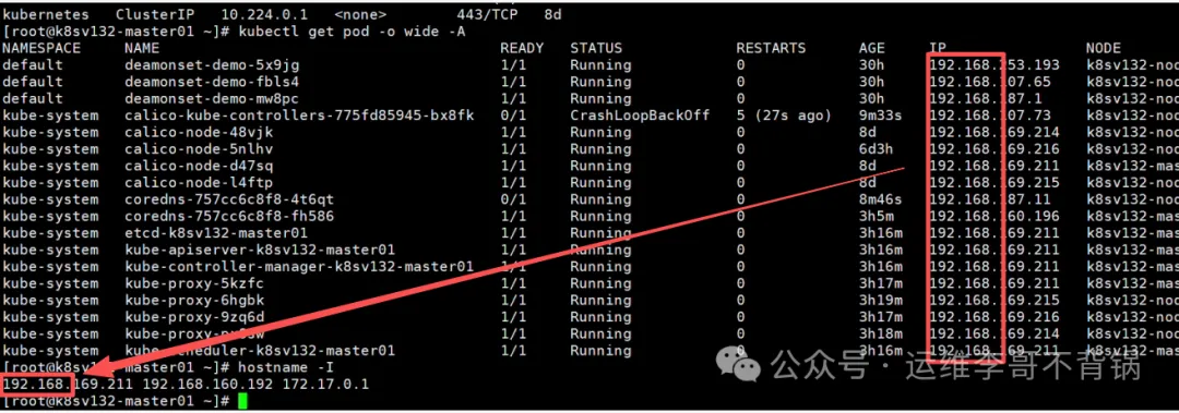 接着我检查了主机IP,找到了最根本的原因:Pod网络和宿主机网络冲突了