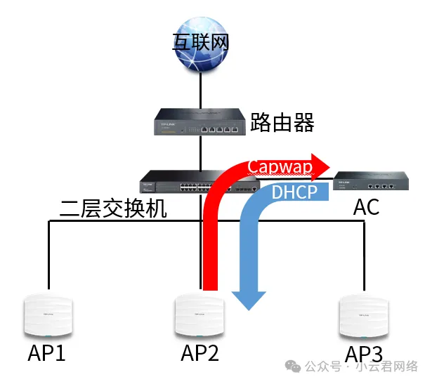 在二层网络架构下,AP的IP地址可由路由器或AC控制器分配。关键在于保证AP获取的IP地址与AC处于相同网段,这样无论采用单播还是广播方式的Capwap请求,都能顺利找到AC并建立稳定连接。