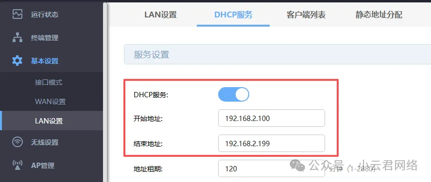 首先需要确认路由器或AC的DHCP服务是否正常启用,同时检查DHCP地址池的配置范围: