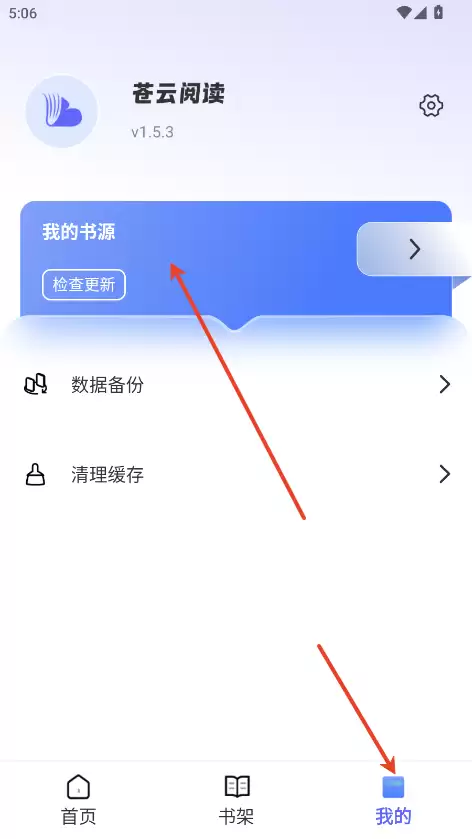 1、启动青云阅读APP,进入"我的"页面,点击其中的"我的书源"功能选项。