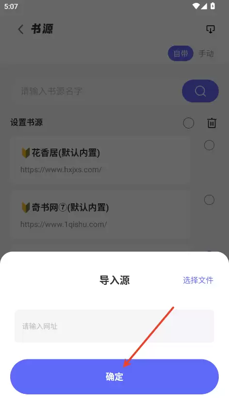 3、在输入框中粘贴或输入您准备好的书源链接,确认无误后点击确定按钮即可成功导入。