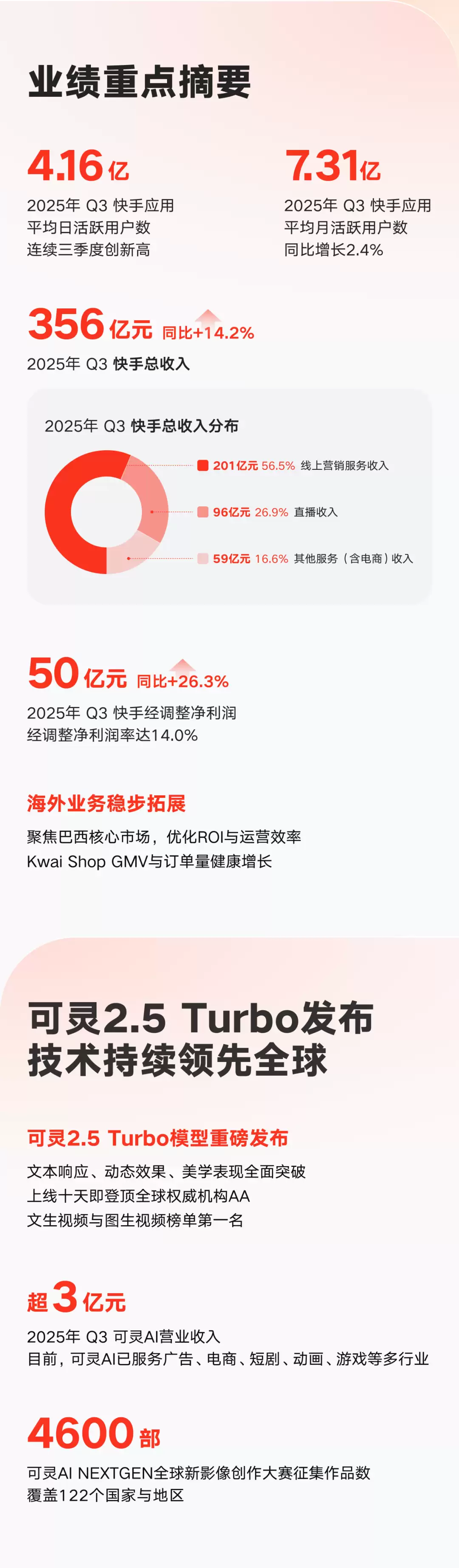 快手Q3总营收356亿元,同比增长14.2%创2025年新高