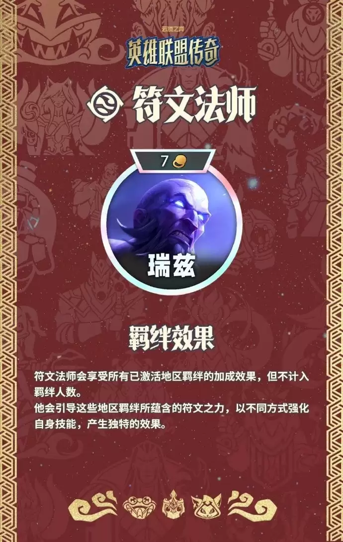 作为符文法师,你将自动获得所有已激活区域羁绊的加成效果,但这个职业不会计入羁绊的激活人数要求。