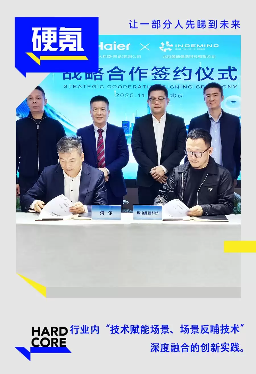 2025年11月19日,海尔机器人公司与北京盈迪曼德科技有限公司(以下简称INDEMIND)在北京签署战略合作协议,携手推动具身机器人在家庭场景的创新应用与深度落地。海尔智家机器人产业总经理丁来国与INDEMIND创始人于飞,以及双方核心团队共同出席了这场具有里程碑意义的签约仪式。