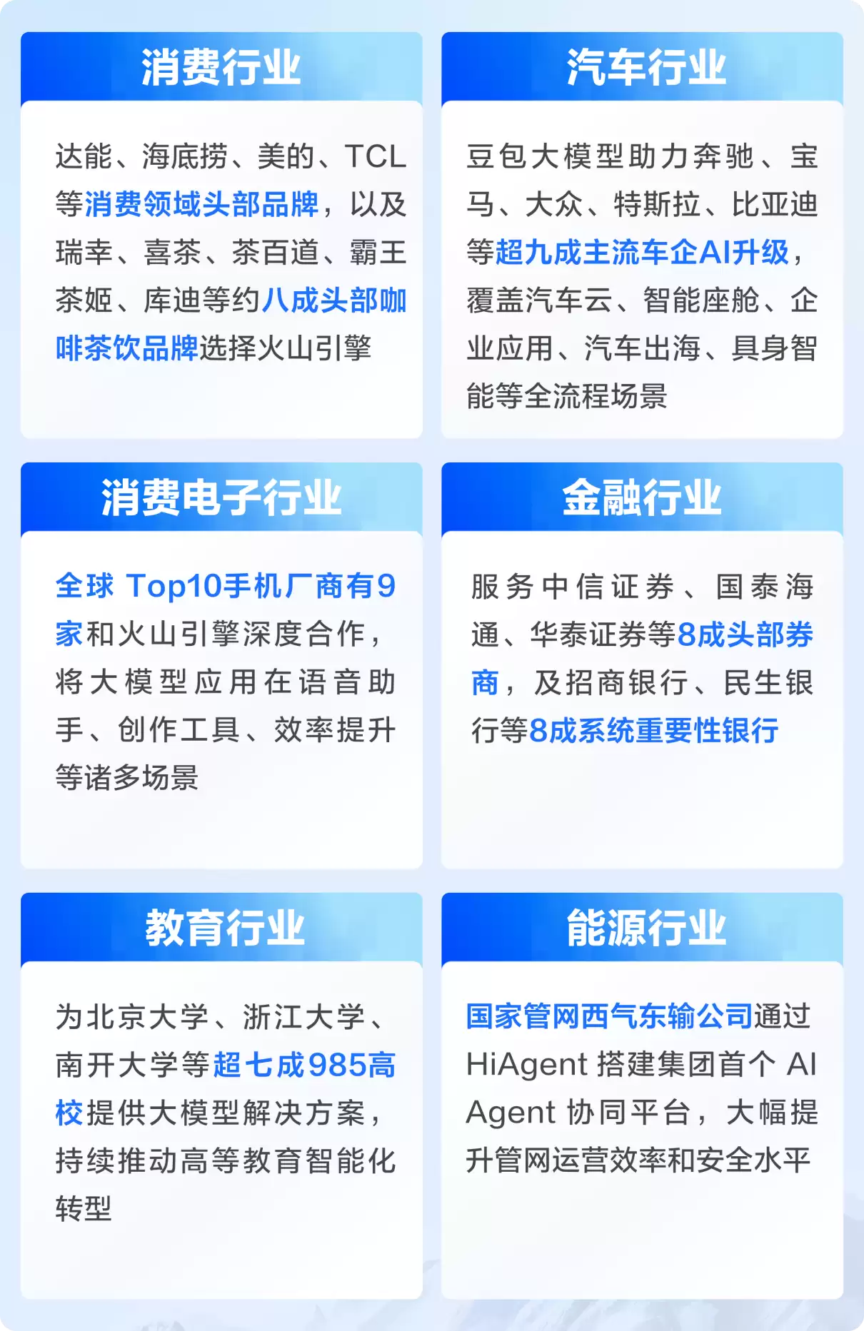 火山引擎披露的各行业客户情况
