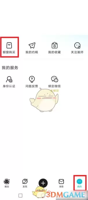 1、进入画加App主界面后,点击右下角“我的”功能入口,选择橱窗购买选项。