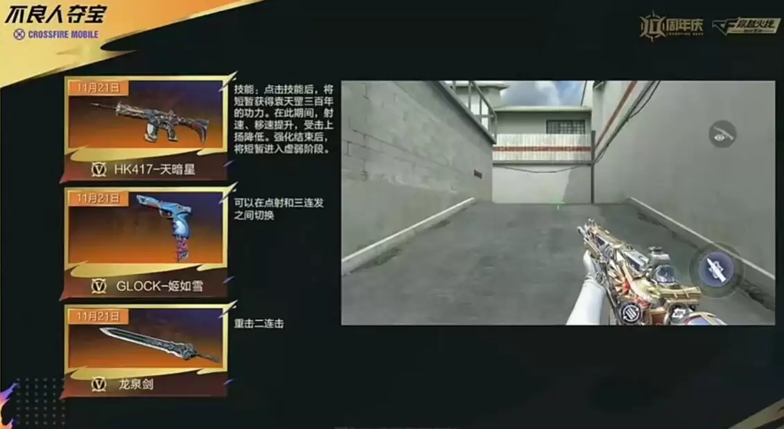 在这次夺宝活动中,玩家发现了三款专属的联动武器。它们各具特色,比如主武器HK417-天暗星,作为一把自动步枪,综合性能出色,可以与朱雀进行比较。不过这个朱雀版本属于升级版,能有效提升射击速度和移动能力。姬如雪在设计时以格洛克为基础,同时融入了角色主题元素,这款武器支持三连发,属于英雄级手枪。龙泉剑的攻击速度处于中等水平,但整体表现比较均衡,适合近距离作战使用。