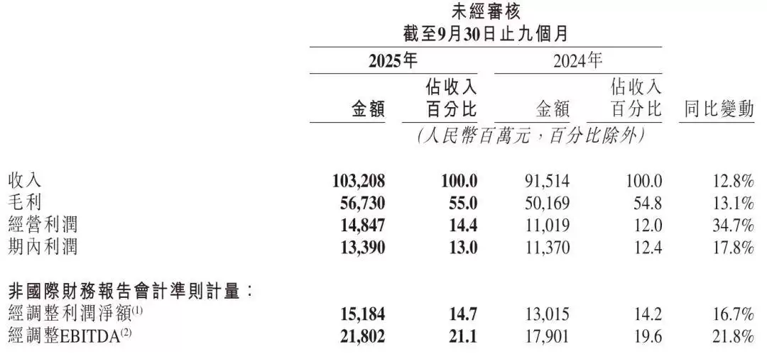 近日,快手科技发布了2025年前三季度及第三季度财务报告。报告显示,在持续推进AI战略的同时,公司收入与利润双双实现稳健增长,发展势头强劲。财报披露,2025年前九个月,快手总营收达到1032亿元,同比增长12.8%;毛利润为567.3亿元,增长13.1%;毛利率进一步提升至55%。在盈利表现上,运营利润和期内利润同比分别增长34.7%和17.8%,达到148.47亿元和133.9亿元。