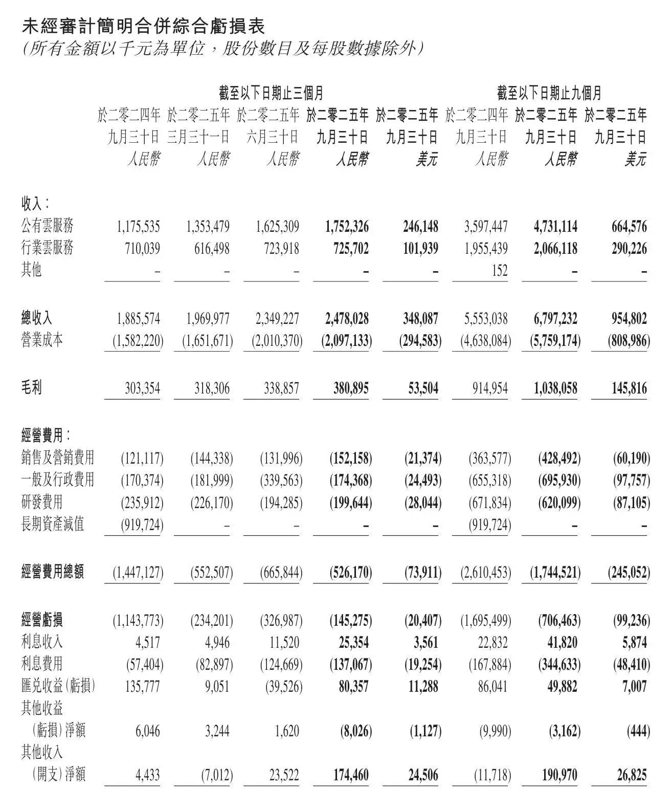 成本端数据显示,本季度总成本为20.97亿元,同比增长32.5%,主要源于对人工智能算力资源的持续投入。尽管成本上升,公司通过规模效应实现毛利增长,当期毛利达3.81亿元,同比增长25.6%,毛利率为15.4%,较去年同期微降0.7个百分点。经营费用总额较去年同期大幅缩减63.6%至5.26亿元,其中销售及营销费用因员工成本增加而上升25.6%,研发费用则因股权激励减少而下降15.4%。