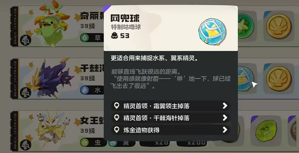 如果你是刚接触游戏的新手玩家,可能会好奇网兜球的具体作用。其实它的用途非常明确,就是专门用来提高水系和翼系精灵的捕捉成功率。在《洛克王国:世界》中,水系和翼系精灵都是非常强力的类型,尤其在后期战斗中,它们往往能发挥关键作用。因此,熟练掌握网兜球的使用技巧,对于提升你的整体战斗力来说,是非常重要的一步。