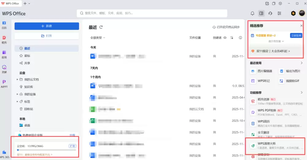 但这并不代表WPS放弃了广告变现。在软件的多个界面位置,仍然能看到各类推广内容,其中部分广告并未明确标注推广标识,很容易让用户产生误解。