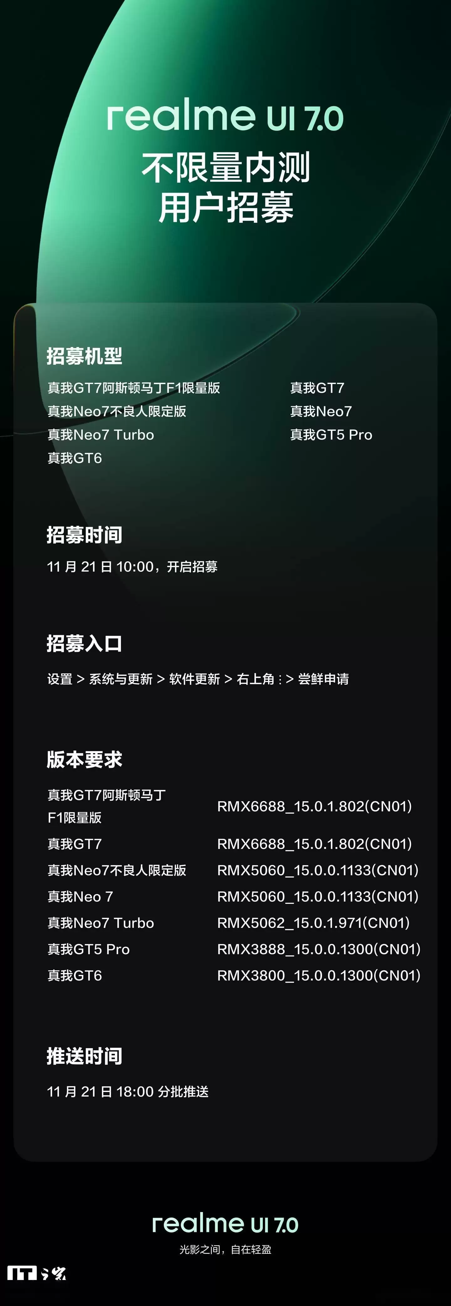 realme UI 7.0不限量内测10点开启:多机型可升,正式版临近