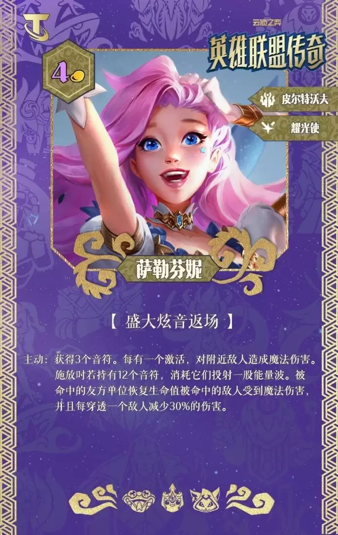 云顶之弈S16版本英雄联盟传奇主题已经在PBE美测服迎来更新,新赛季将引入众多全新羁绊和弈子,同时不少经典羁绊与老牌英雄也将回归。许多小伙伴都好奇各个英雄的技能效果,接下来就带大家一览S16赛季萨勒芬妮羁绊的具体表现。