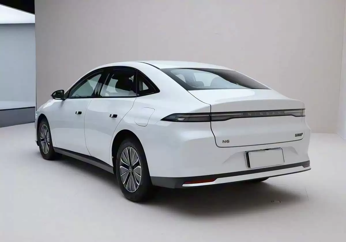 外观设计上,N6采用了简洁流畅的车身线条。侧面轮拱处通过若隐若现的上腰线勾勒出舒展姿态,黑色侧窗边框与平滑车顶形成视觉延伸效果,配合五辐花瓣式轮毂增添运动气息。车尾延续简约风格,贯穿式尾灯组与微微上翘的扰流板形成呼应,整体造型既保持了中型车的稳重感,又通过细节处理展现出年轻化特质。