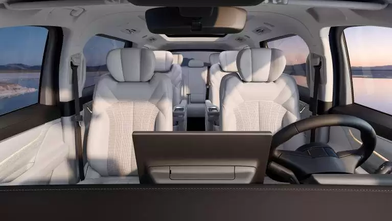 空间表现是银河V900的一大亮点。整车尺寸达到5360mm×1998mm×1920mm,轴距3200mm,凭借8.41㎡的超大车内有效面积和3974mm的超长车内有效长度,实现91.8%的同级最高得房率。车内宽度和高度分别达到1645mm和1334mm,以“豪华大平层”格局彻底告别空间焦虑。独创的“3个1”布局——二排、三排空间均超1013mm,后备箱容积超1100L,配合2720mm的贯穿式通道,让全家尽享自由舒展的乘坐体验。后备箱可容纳15个20寸行李箱,满载7人时容积仍达同级2倍,轻松满足多元出行需求。V900提供同级唯一的6/7/8座灵活布局,行业首创的魔法第四排(8座版)可实现前翻乘坐、后翻观景或折叠隐藏,42处储物空间遍布全车,前排超大储物桥洞专为高跟鞋与手提包设计,兼顾实用性与便利性。