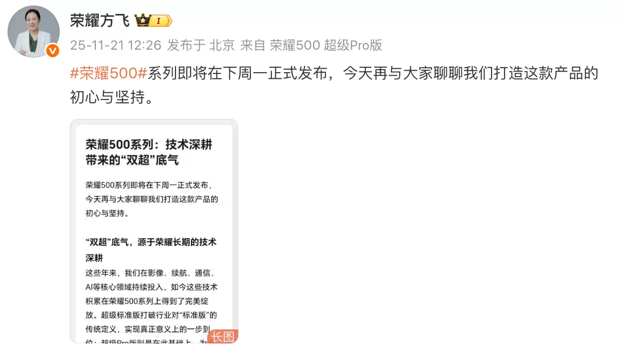 荣耀的逻辑更加直接且“霸道”:如果对手的Pro才是及格线,那么荣耀500“超级标准版”,起步就是同档Pro级;而荣耀500 Pro,则要在这一基础上“强上加强”,成为真正的“超级Pro版” 。提供一个技术溢出、体验接近旗舰的专业选择。