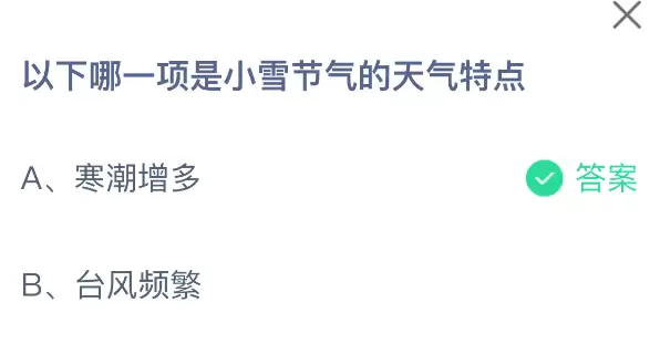 小雪节气天气特点解析 支付宝蚂蚁庄园今日答案