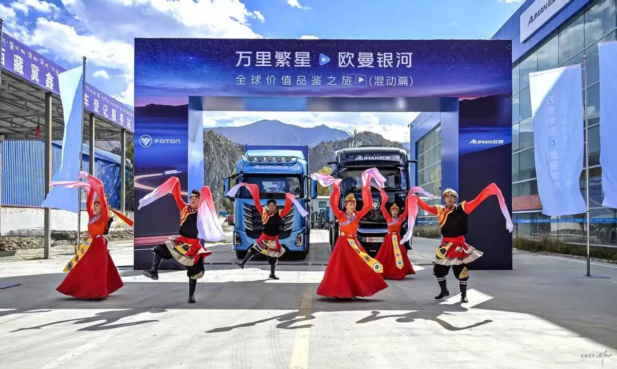 一场横跨中国三大地貌阶梯的极限挑战,近日由福田汽车欧曼银河车队圆满完成。这支由欧曼银河9+HEV、银河5M+PHEV及银河7燃气重卡组成的混编车队从北京启程,途经华北平原、秦岭山脉、川西高原,最终抵达青藏高原腹地拉萨,全程长达5390公里。
