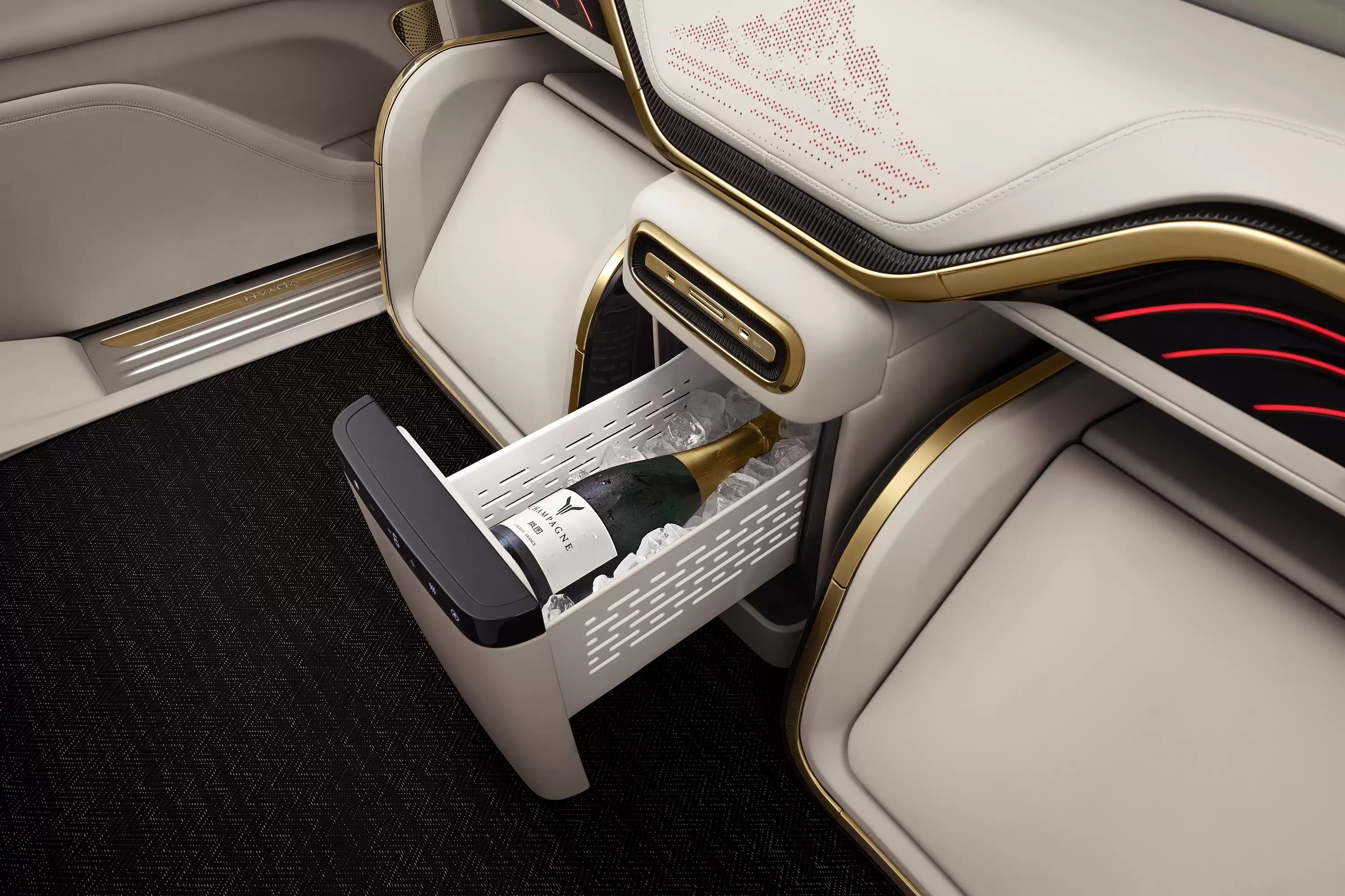 针对商务精英的深度需求,新车打造出移动行宫般的私享空间。首创的"山河云榭"模式通过中岛式电动履履舱与166°零重力座椅的无缝衔接,可瞬间转化为超2米长的休憩平台。全系标配的脚托加热、分区按摩及通风功能,配合50英寸IMAX巨幕与22扬声器丹拿8.1.6声道音响系统,构建起集办公、娱乐、休憩于一体的多功能场景。隐藏式高定雨伞、主副双冷暖箱等细节配置,则将国宾级礼遇融入日常使用场景。