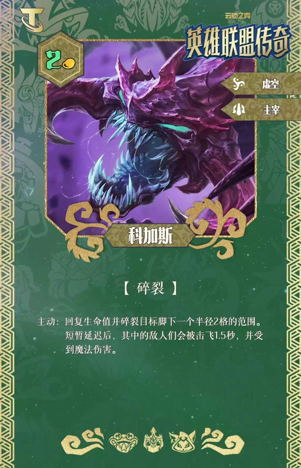 云顶之弈S16版本英雄联盟传奇主题已在PBE美测服迎来更新,新赛季将带来全新羁绊和棋子,同时不少经典羁绊与英雄也将重磅回归。想必很多小伙伴都很好奇各个英雄的技能效果吧?下面我们就来看看S16新赛季科加斯羁绊的具体效果。