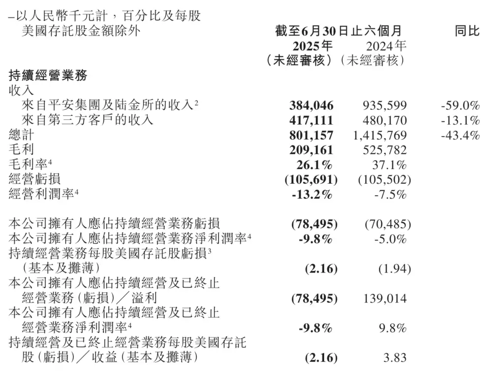 2025年上半年,壹账通实现毛利润2.09亿元,较上年同期的5.26亿元明显收窄;毛利率为26.1%,较上年同期的37.1%有所下滑。同期公司运营亏损达1.06亿元,运营利润率为-13.2%。