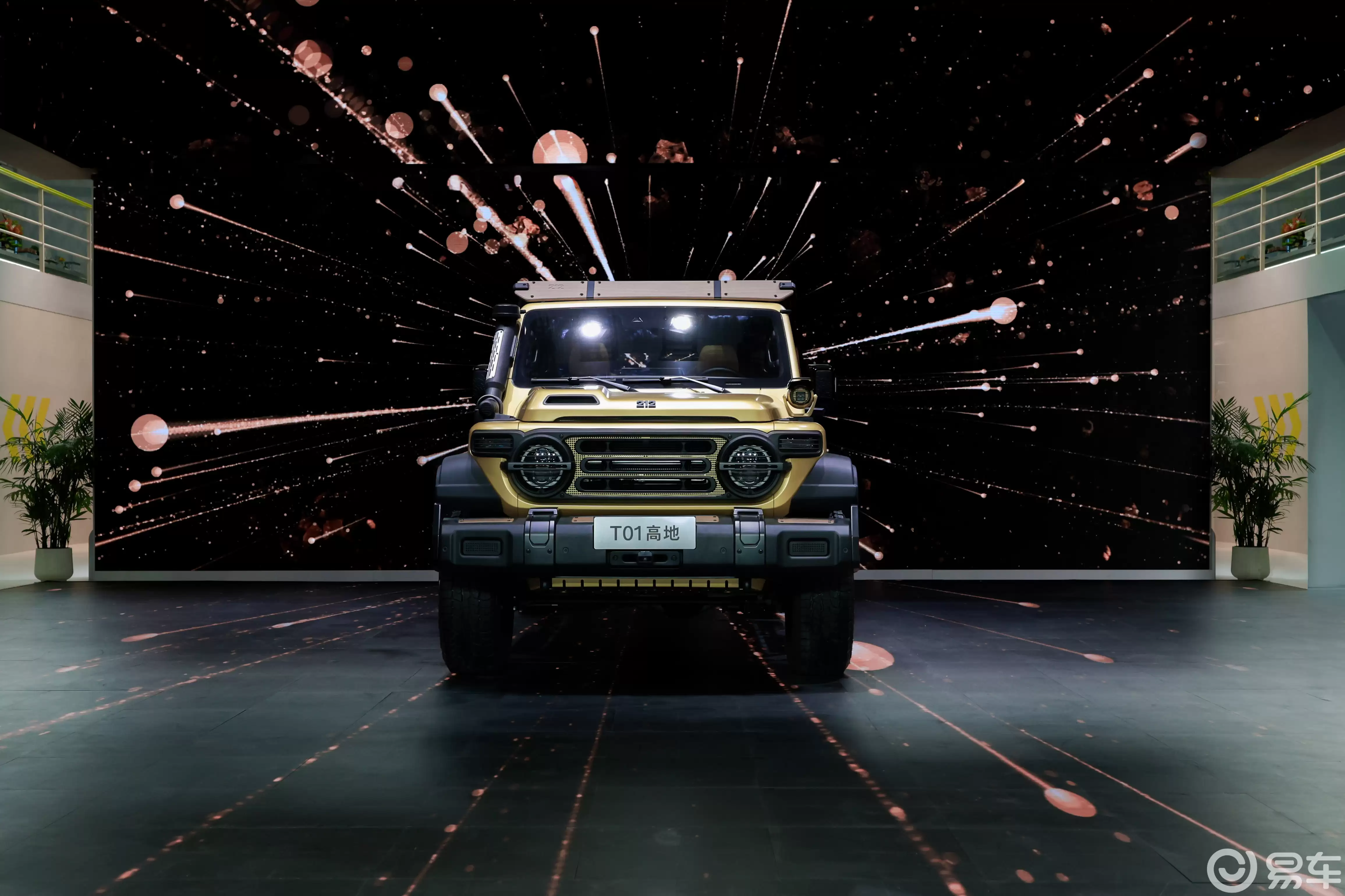 作为本次车展的重磅新品,212 T01高地定位为“全副武装的性能战士”,专为长途穿越、户外越野和自驾旅行等多元化场景打造。该车型传承了家族标志性的“一拱、二圆、三横”设计元素,前罩进气格栅如山峦般隆起,与“高地”理念相呼应。车身尺寸整体扩大,硬派风格更加突出。专属定制色“晨曦金”搭配“高地纹”灵感的门饰板与车身贴,增加了防滑侧踏板、瞄准镜式门把手等实用配置,每一处设计都兼顾了功能性与视觉张力。