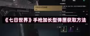 在七日世界这款游戏中,手枪加长型弹匣对提升武器的持续输出能力至关重要。那么如何才能获得这个强力配件呢?