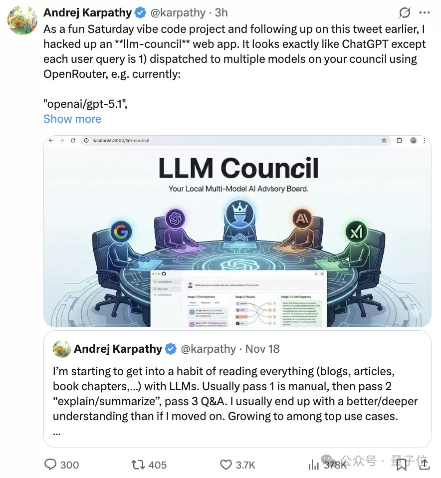 这次直接整了一个“大模型议会”(LLM Council)web app。