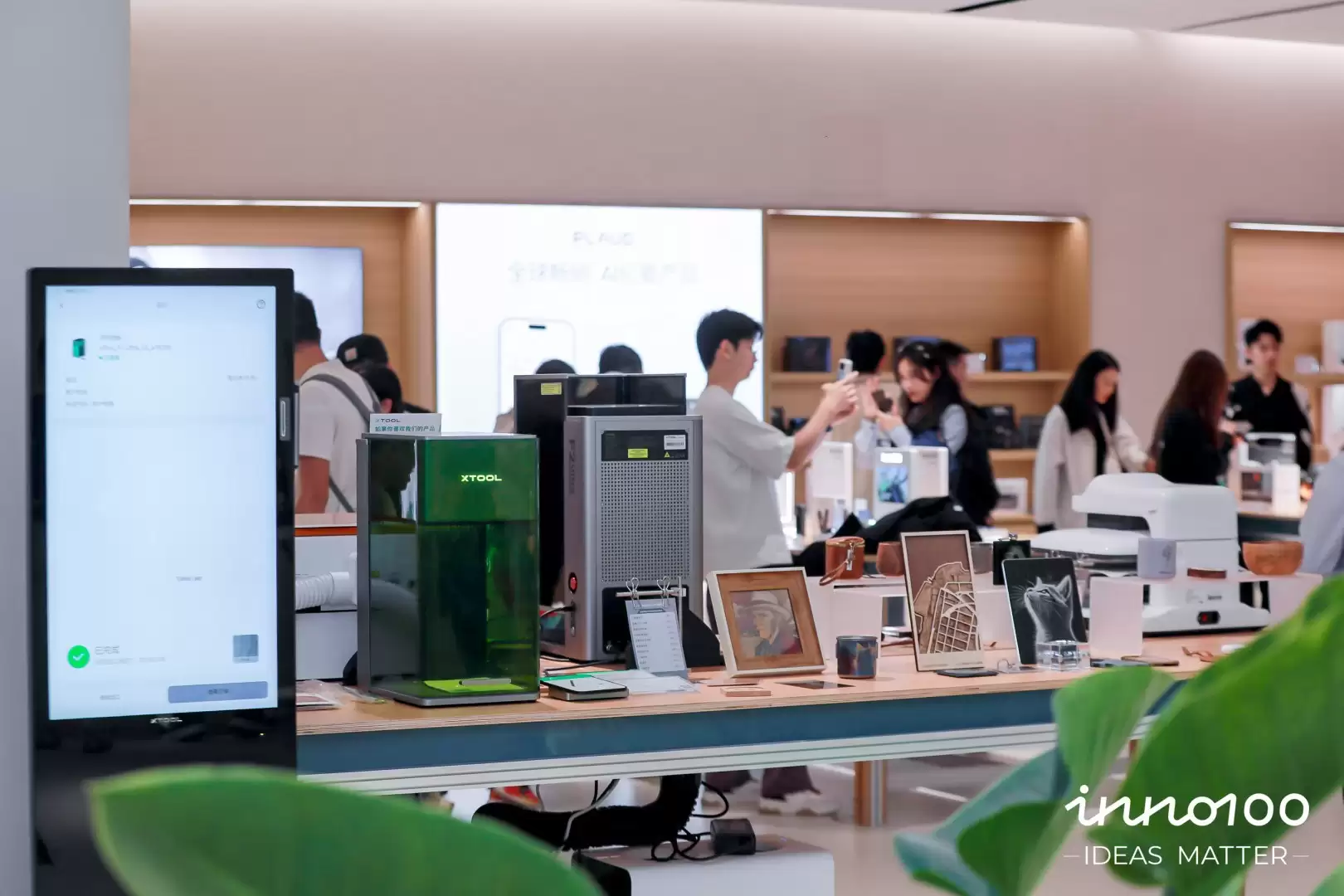 在“万物定制工作站”中,通过集成激光雕刻、3D打印、UV打印等专业设备,可为顾客在店内选购的产品提供即时的个性化定制服务。