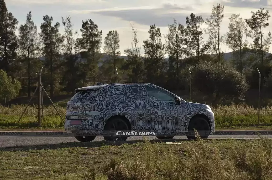 谍照中的测试车身披厚重伪装,不过透过细节依然能捕捉到设计的巧妙之处。前脸裸露的光源清晰可见,大灯延续了概念车的犀利造型,细节处做了进一步优化。下方包围采用贯穿式设计,两侧还设有通风口,相比概念车展现的越野气质,量产版显然融入了更多运动元素。