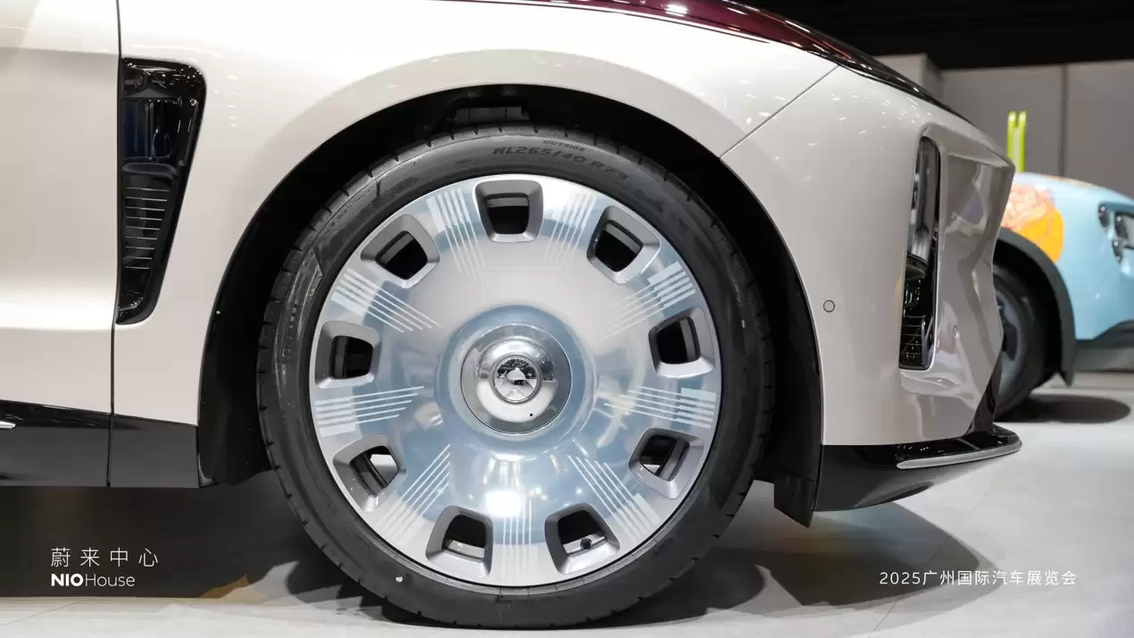 独创的"地平线腰线"是ET9地平线特别版的一大设计亮点。这条腰线并非单调统一,而是从前至后实现了色彩的"天地交映"。与之搭配的23英寸锻造"揽月轮圈",镜面抛光与液态金属色泽相互交错,轮辐上镌刻着"一帆风顺"的雷雕图案,就连轮芯Logo在行驶过程中也能始终保持水平。这些细节之处,无不彰显着它作为旗舰车型的独特精神表达。