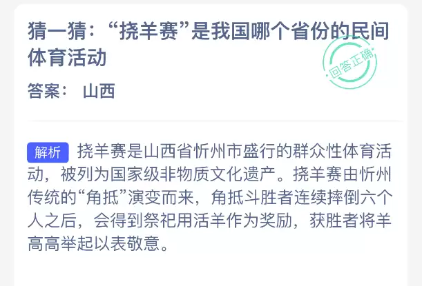 挪羊赛起源哪个省?支付宝蚂蚁新村今日答案揭晓