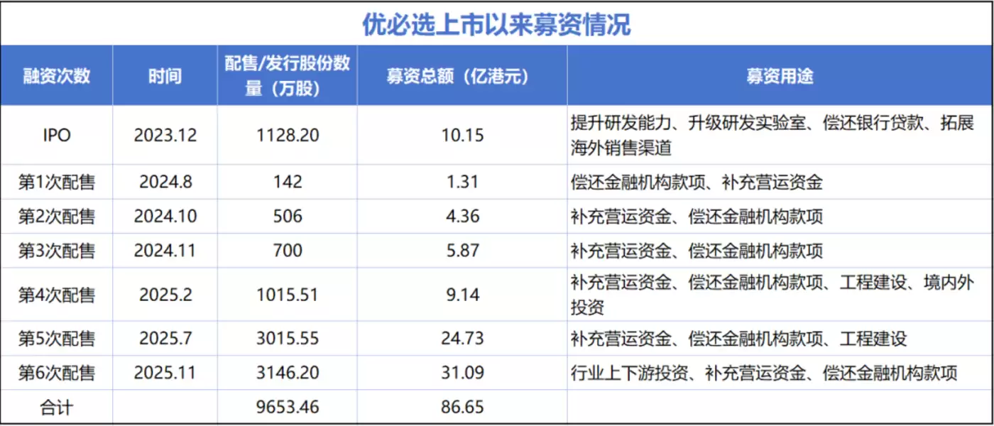 这是优必选年内第三次配售,也是该公司自2024年12月上市以来的第六次融资。随着融资频率加快,募资规模也逐步攀升,年内三次配售分别募集9.14亿港元、24.73亿港元及31.09亿港元。短短一年间,优必选通过配售累计融资超70亿港元,达IPO募资额的7倍。