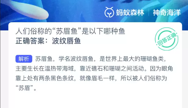 苏眉鱼是什么鱼?支付宝神奇海洋今日答案揭晓