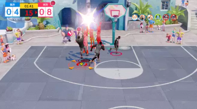 成功触发“两败俱伤”后,2米范围内的敌方单位在1.5秒内将更容易被封锁。但需注意,该技能存在代价:一旦抢断成功,自身在下一个进攻回合中的投篮命中率将会下降,属于用短期火力换取关键球权的战术选择。在进攻端,他的“进攻大旗”技能能根据队友所处区域激活对应增益——中距离区域提升中投命中率,外线区域提高三分命中概率,每次激活还能重置突破技与终结技的冷却至0秒,使其能够连续发动攻势。
