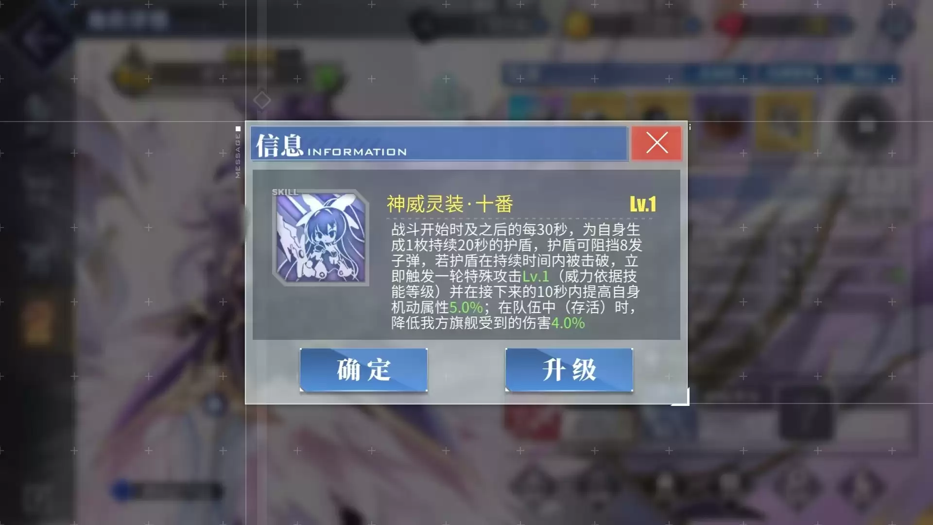她的二技能则是一个偏防守向的技能:从战斗开始,夜刀神十香每30秒都能获得一个可抵挡8颗子弹的护盾。护盾持续时间内她不会受到任何伤害,而且在护盾消失后,还能为夜刀神十香提升最高15%的机动性,让她更好地规避护盾消失期间的攻击。最重要的是,只要夜刀神十香存在于场上,旗舰便能持续享受最高10%的伤害减免效果。即使敌人拥有出色的跨射能力和空袭实力,也很难轻易越过前排舰船击毁旗舰,全队也不会因旗舰被击毁而被强制判定作战失败。