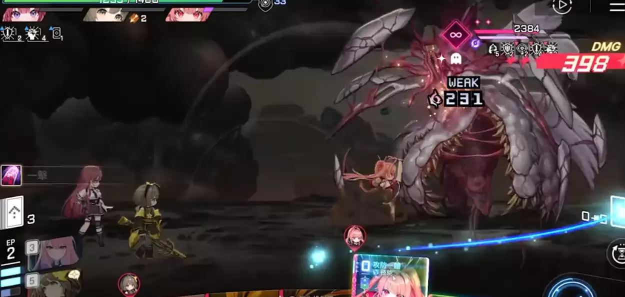 蕾伊的核心战斗机制完全围绕卡牌展开,所有技能都以获取卡牌为目标。她在游戏中的强化获取与技能运用都是展开攻势的重要前提。一技能"共鸣之暗能"在前期能快速提升低费用卡牌的伤害,帮助玩家在开局阶段建立优势,因此建议优先释放。二技能"黑暗凝聚"作为高爆发的输出核心,能迅速强化手中攻击卡牌的威力,是辅助队友打出高额伤害的基础保障。三技能"掠食者之刃"若能与前两个技能形成配合,可对单体敌人造成瞬间爆发,在应对高威胁单位时是非常有效的清场手段。四技能"点击时间"则更具策略性,兼顾攻防能力——通过弃置手牌来恢复生命值的设计,让蕾伊的生存能力大幅提升。