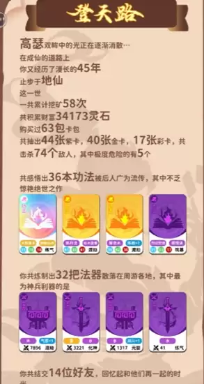 卡包修仙游戏传承成就与各流派深度绑定,多数需以对应传承修炼至地仙方可解锁核心成就,部分传承还设有专属剧情或特殊操作成就。例如“焚心锻造术”需收集特定道具,“真鬼谷卦术”涉及角色转化