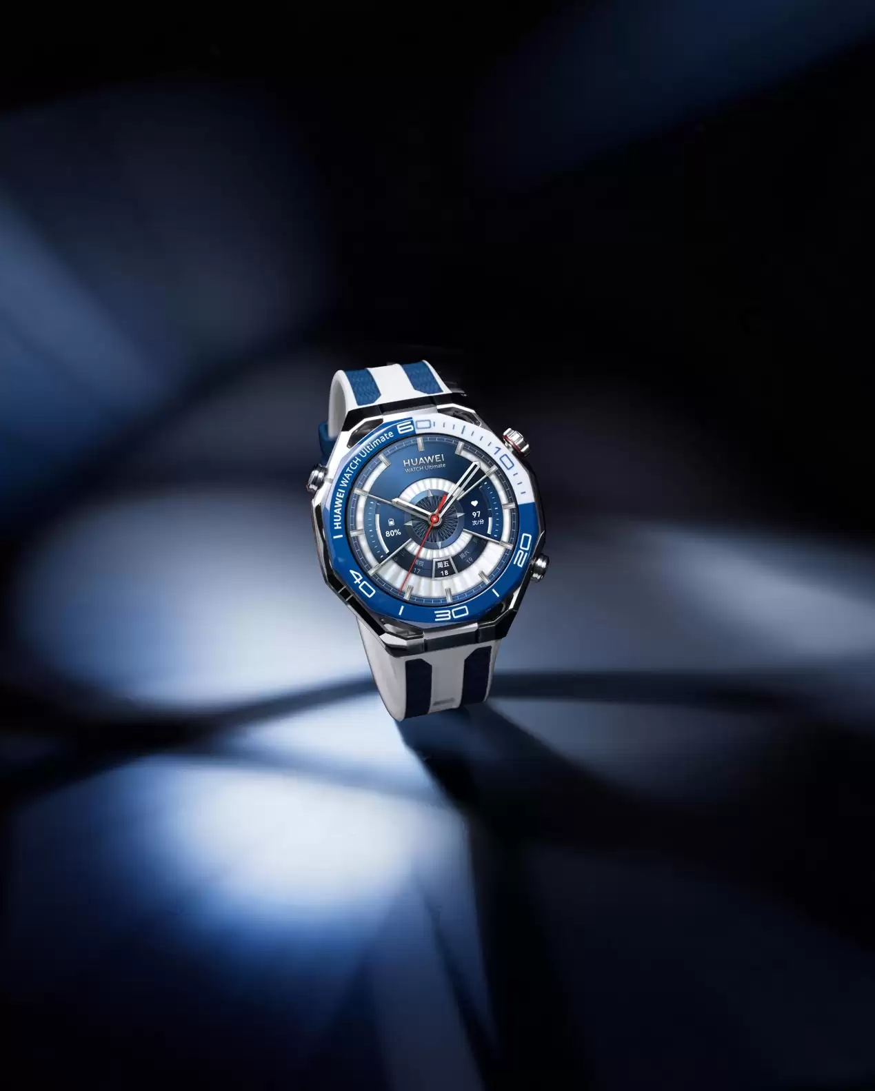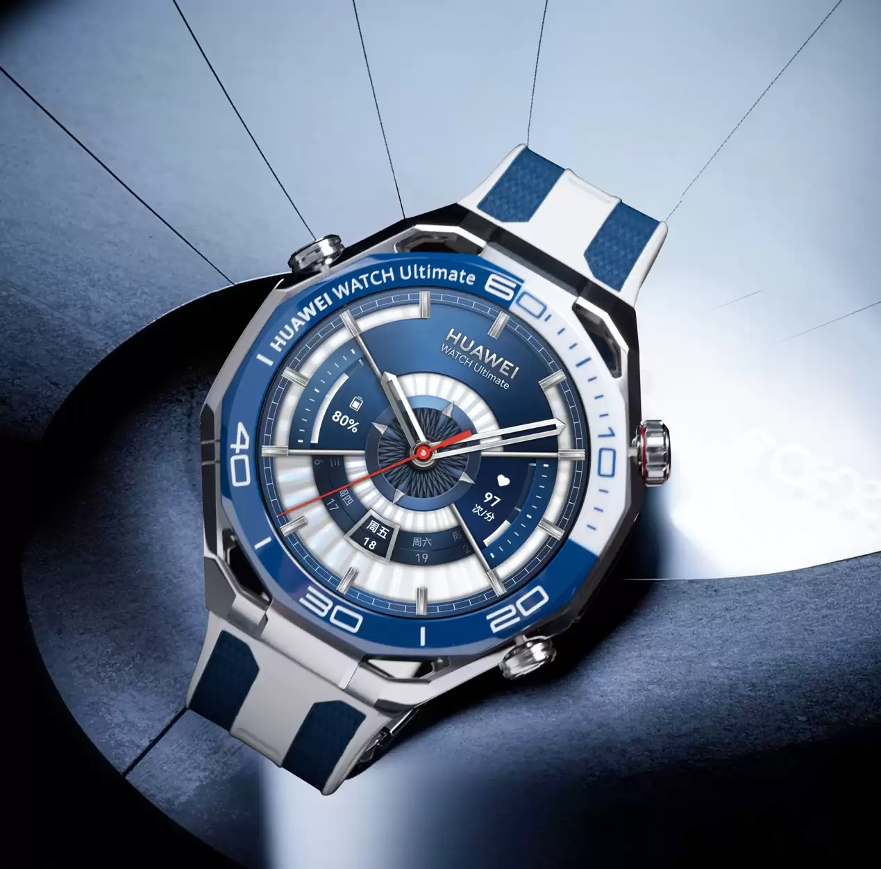 在高端腕表领域,材质往往是定义产品档次的核心要素。华为WATCH Ultimate 2 非凡探索延续了该系列对极致工艺的追求,表壳采用超坚固非晶锆合金,辅以双色纳米微晶陶瓷表圈,并采用独特的八边形镂空设计,线条硬朗,实现了轻量化与坚固性的平衡。这种高难度的工艺组合,不仅赋予了产品媲美传统奢华腕表的"智能蓝水鬼"质感,更在耐用性上实现了质的飞跃。