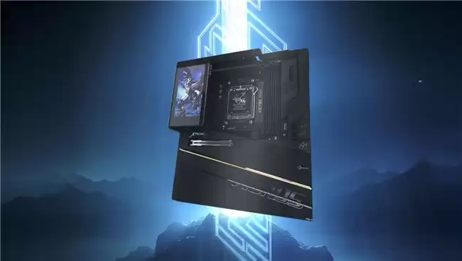 个性化与实用性兼备,主板正面配备5英寸Edge View LCD屏幕,玩家可自定义显示内容彰显个性。背部I/O接口丰富全面,包含双USB4端口(最高40Gbps,视CPU而定)、USB-C 20Gbps/10Gbps端口各一、八个USB-A 10Gbps端口、HDMI接口及音频插孔,前置USB-C 20Gbps端口进一步拓展连接便利性,全方位覆盖各类外设接入需求。