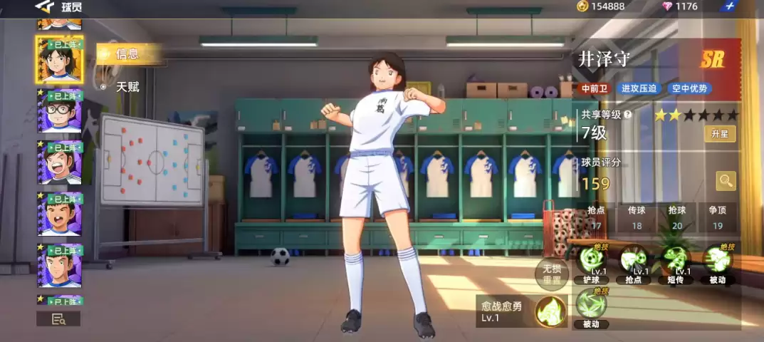 作为SR品质球员,井泽守在后期强度或许有所不足,但在游戏初期过渡阶段却足够胜任。实际上,在中前卫这个位置上,他制造的进攻压迫力相当突出。最特别的是,他具备一定的空中优势——这一点几乎是其他同位置球员难以替代的。井泽守的整体评分达到159分,比普通SR球员的积分要求高出不少。在实战中,大家可以重点利用抢断17、传球18、抢球20、争顶19这几项关键数值。从现有的六维属性图来看,他的各项能力相当均衡,其中最突出的要数预判属性——基础分值达到22点,仅凭这一点他就足以胜任中前卫职责。其他四项优势属性就是我们刚才提到的这四个,因此在比赛中这几项动作都是他频频使用的核心技能。