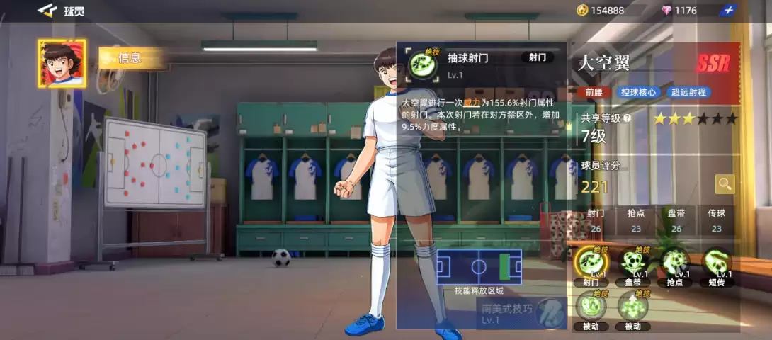 太空翼在基础评分中的多项数据均领先其他球员,射门强度达到26分,盘带同样获得26分的高分。纵观整体属性,除了封堵属性稍显薄弱仅有15分,抢球属性刚好20分之外,其余各项关键属性都突破了20分的基础分值。这样亮眼的表现,使得他成为众多SSR球员中的数据标杆,堪称这款游戏当之无愧的主角卡。