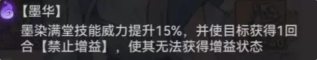 画师抢到先手之后,除了释放增益技能强化己方,更关键的是要给对方挂上【禁止增益】这个减益状态,而这一效果来源于天命技能——【墨华】。